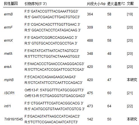 表 1 抗性基因和轉(zhuǎn)移元件所用引物序列