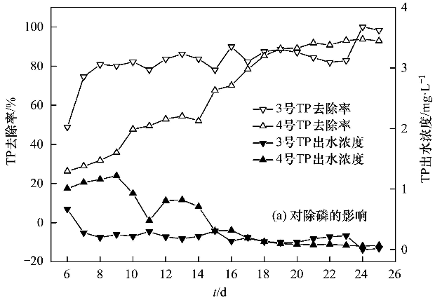 圖 2 微生物耦合硫鐵炭復合填料對脫氮除磷效果的影響