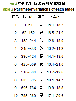 整個運行階段, 進水基質及濾速保持不變, 運行所處的季節及進水溫度如表 2所示.