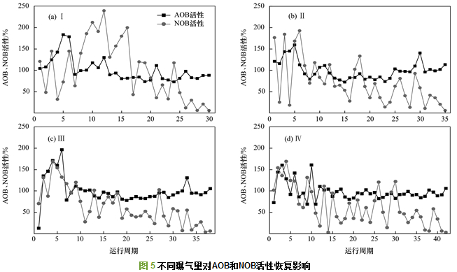 2.3 曝氣量對AOB和NOB活性恢復的影響