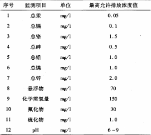 (2) 在脫硫廢水處理系統出口要監測的項目和最高允許排放濃度值見下圖。
