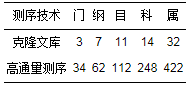 表 1 克隆文庫和高通量測序對細菌氣溶膠在不同分類水平的對比