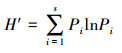 多樣性以Shannon-Wiener指數進行評估, 計算方法如式(2)所示: