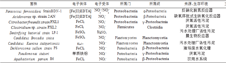 表 1 污水處理系統中發現的厭氧鐵氧化脫氮微生物