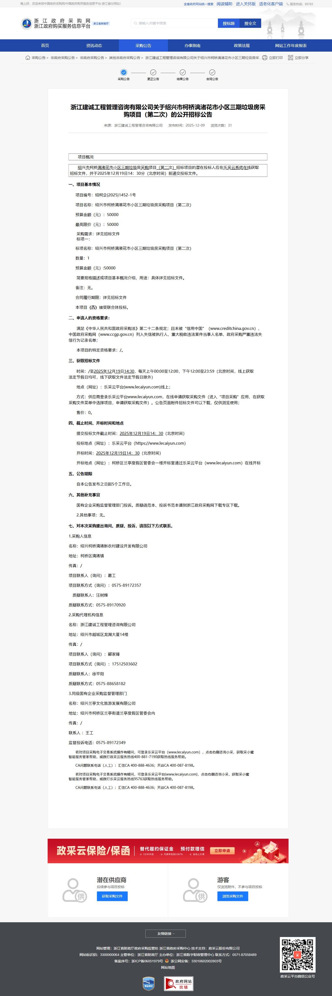 浙江建誠工程管理咨詢有限公司關(guān)于紹興市柯橋注渚花市小區(qū)三期垃圾房采購項目(第二次)的公開招標(biāo)公告