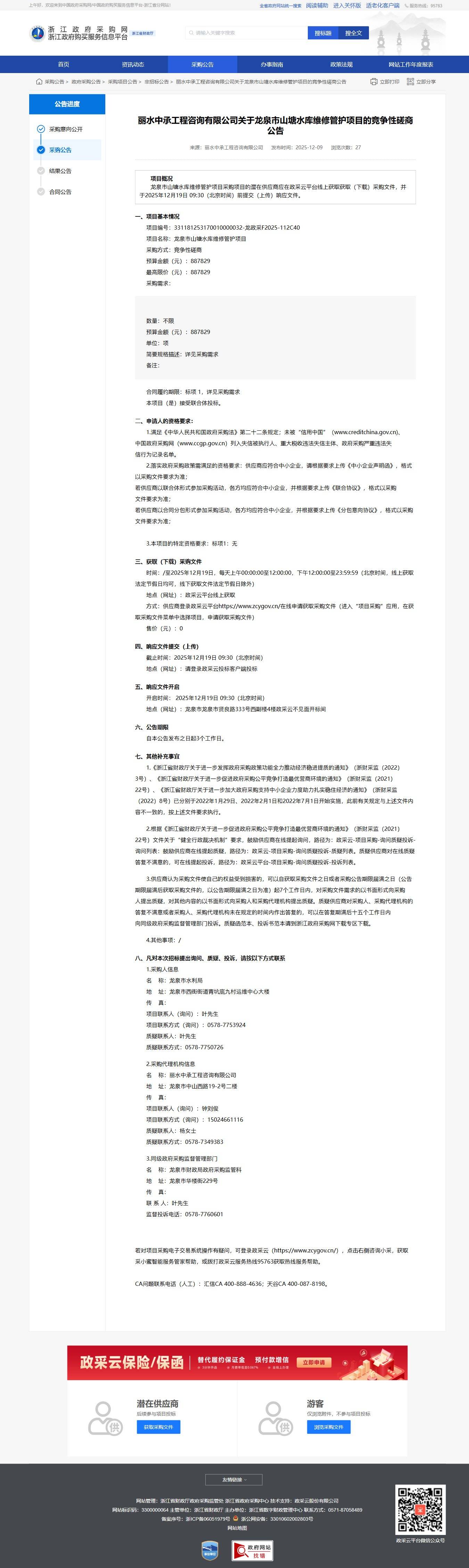 - 項目名稱: 龍泉市山塘水庫維修管護項目