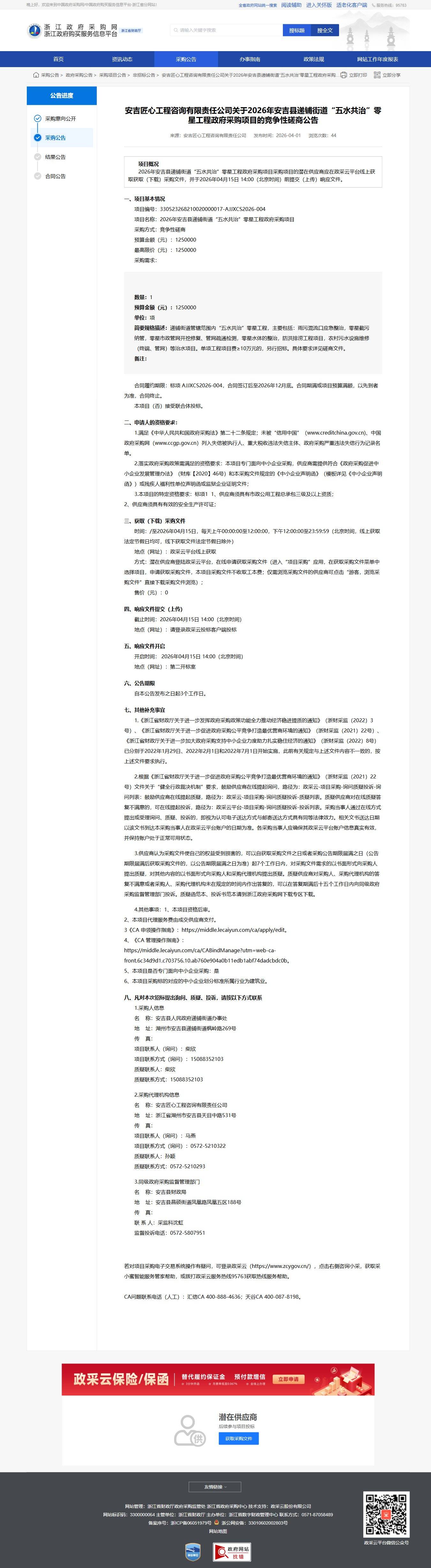 浙江關于2026年安吉縣遞鋪街道“五水共治”零星工程政府采購項目的競爭性磋商公告